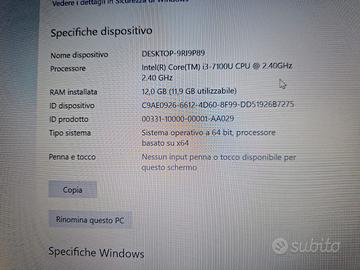 vendo per inutilizzo batteria duratura ssd nuova da 480 gb ram 12 gb sotilissimo in teramente in alluminio completo di scatola e caricabatteria.