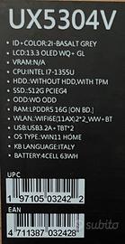 Vendo ASUS Zenbook S13 OLED UX5304VA Notebook in condizioni pari al nuovo, utilizzato per circa 20 ore complessive. Perfettamente funzionante, senza segni di usura. Lo vendo esclusivamente per passaggio a un dispositivo con schermo più grande. Ottima soluzione per chi cerca un portatile leggero, performante e di alta qualità.