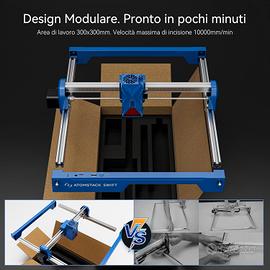 ATOMSTACK 7W Macchina per incisione laser, taglierina laser Swift 7W, taglierina laser ad alta precisione 0,01 mm per legno e metallo, acrilico scuro, pelle, superficie di incisione 300 × 300 mm Precisione avanzata e stabilità senza pari: il laser cutter ATOMSTACK Swift 7W rappresenta un aggiornamento significativo, offrendo maggiore potenza, intelligenza e affidabilità operativa. Incorpora un'innovativa tecnologia di accoppiamento a doppio punto di pressione per ottenere una potente emissione laser da 7W. Un esclusivo sistema di compressione del punto garantisce un punto focale eccezionalmente fine che misura solo 0,06 x 0,08 mm, consentendo dettagli superiori e risultati di alta precisione per progetti complessi. Velocità e capacità di taglio eccezionali: progettato per l'efficienza, questo incisore laser è dotato di un'asta a vite integrata e di un design a lunga lunghezza focale. Offre una potenza di uscita elevata di 7000 mW, combinando perfettamente una forza di taglio potente con un'incisione meticolosa. Con velocità operative che raggiungono i 400 mm/s, riduce drasticamente i tempi di lavorazione mantenendo la capacità di lavorare efficacemente su una vasta gamma di materiali. Design incentrato sull'utente e sicurezza: progettato per essere accessibile, ATOMSTACK Swift 7W è veloce e semplice da assemblare, consentendoti di iniziare a utilizzarlo in pochissimo tempo. Offre un'ampia area di lavoro di 300 x 300 mm per gestire progetti di varie dimensioni. Connettività senza interruzioni e flessibilità del software: questa macchina vanta un'ampia espandibilità e supporta connessioni tramite cavi Bluetooth e USB e WIFI. Offre un'ampia compatibilità software, funzionando non solo con l'app proprietaria e il software per PC di ATOMSTACK, ma anche con piattaforme di terze parti popolari come Lightburn e LaserGRBL (software venduto separatamente) per una configurazione completa e il controllo del processo creativo. vendita tra privati con garanzia di SUBITO.IT