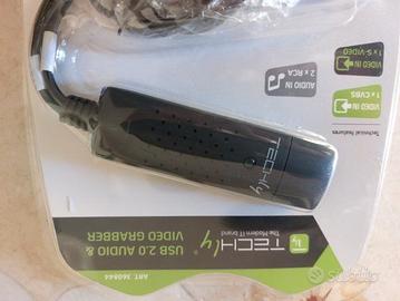 Audio & Video USB 2.0 Grabber della Techly Digitalizzate i vostri dati in modo semplice e veloce. Dopo aver collegato il computer tramite l'interfaccia USB 2.0, è possibile collegare un lettore CD, un lettore DVD, un videoregistratore, un DV, un V8 o un altro dispositivo AV con S-Video o S-VHS. | | Caratteristiche | Include un software di editing video professionale: Honestech HD DVR3.0 | Interfaccia USB 2.0 | Acquisizione video tramite interfaccia USB 2.0 | Ingresso video: 1x RCA composito, 1x S-Video | Ingresso audio: 2x audio stereo (RCA) | Supporta i formati video NTSC e PAL - NTSC: 720 x 480 a 30 FPS, PAL: 720 x 576 a 25 FPS | Acquisizione di fonti video da VHS, V8, Hi8 ecc. | Registra su DVD +/- R / RW, DVD + / VR e DVD-Video | Supporta il controllo di luminosità, contrasto, tonalità e saturazione | Leggero e compatto | Plug & play | Supporta i formati di ingresso: DVD +/- R / RW, DVD +/- VR e registrazioni DVD-Video | Supporta i formati di uscita: DV, AVI, MPEG, WMV, VCD, DVD | Requisiti di sistema | Porta USB 2.0 libera | Sistema operativo: Windows 2000, XP, Vista, Windows 7 / 8 / 10 | Processore: Intel Pentium 4 o superiore | HD: 1 GB di spazio disponibile sul disco rigido per il file di installazione del programma | Supporto del formato, 4 GB + spazio sul disco rigido per la registrazione e l'editing video | Memoria: 256 MB di RAM (512 MB per l'editing video) | Display compatibile con Windows almeno 1024x768 | Scheda audio: scheda audio compatibile con Windows vendo 10