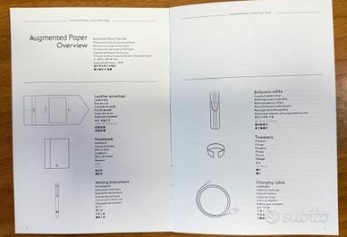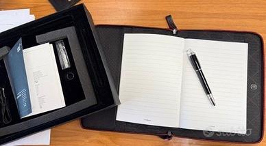 L'Augmented Paper di Montblanc permette di scrivere sulla carta tradizionale e archiviare tutti gli appunti e gli schizzi, grazie al digitalizzatore incluso nella custodia in pelle, e di trasmettere gli appunti al dispositivo mobile attraverso la tecnologia Bluetooth tramite l’app Montblanc Hub. • Trasformare gli appunti scritti a mano in testo digitale • Modificare, ricercare e organizzare gli appunti digitalizzati • Presentare gli appunti scritti a mano su uno schermo con la modalità Live • Condividere gli appunti in vari formati con un semplice clic • Personalizzare gli appunti applicando template personalizzati Il Set Augmented Paper comprende un blocco note con fogli a righe e una penna a sfera Montblanc in una busta in pelle. NELLA CONFEZIONE Nella confezione: Set che comprende un digitalizzatore in pelle, con blocco note rosso a righe, 1 penna a sfera Montblanc, 3 refill piccoli per penne a sfera + pinzetta per estrazione, cavo USB , guida di avvio rapido. Confezione originale, aperta solo per verificare il funzionamento del dispositivo COMPATIBILITÀ Dispositivo: Dispositivi Apple e Android