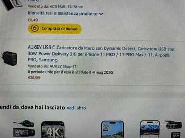 Vendo causa inutilizzo AUKEY USB C Caricatore da Muro con Dynamic Detect, Caricatore USB con 30W Power Delivery 3.0 per iPhone 11 PRO / 11 PRO Max / 11, Airpods PRO, Samsung