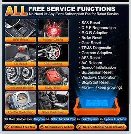 Specifico per tutti i modelli Toyota/Lexus con aggiornamenti a vita inclusi. Possibile utilizzare anche per altri marchi, acquistando i file dal sito del dispositivo. Viene venduto su amzn a oltre 200euro. Dispositivo di auto diagnostica, reset, settaggio altri parametri per tutti i sistemi dal 1996 in poi. • 11 lingue • Regolazione iniettori • Reset error • SAS Reset • D-P-F Regeneration • E-G-R Adaption • Brake Reset • Gear Reset • TPMS Diagnostic • Gearbox Adaptive • AFS Reset • A/C Relearn • Sunroof Initialization • Suspension Reset • Windows Calibration • Stop/Start Reset .. a molto altro