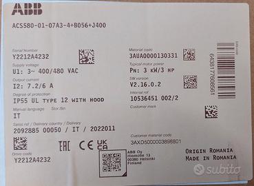N.2 Azionamento inverter ABB ACS-AP-S 3AUA00000130331. Nuovi mai usati in confezione originale compreso di manuali d'uso, tastierino pannello operatore. E 580 cad.