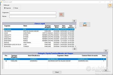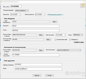Programma per la gestione di B&B, Camping e similari. Il suo punto di forza, una volta inseriti gli alloggiati (sia come ospiti singoli o come gruppi/famiglie) è che permette di caricarli sia nel Servizio Alloggiati della Polizia di Stato e sia sul sito SINFONIA della regione CAMPANIA in maniera automatica. Gli arrivi vengono conservati nello storico e possono essere facilmente duplicati (è il caso delle presenze periodiche fisse) senza dover reinserire tutti i dati degli alloggiati. Il sistema calcola anche in automatico la tassa di soggiorno, tenendo conto dell'età, delle eventuali disabilità e del numero max consecutivo di notti trascorse.