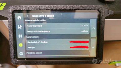 Vendo Bambu Lab X1 Carbon in ottime condizioni, con circa 650 ore di utilizzo (praticamente come nuova).