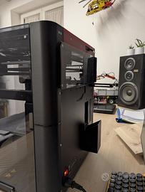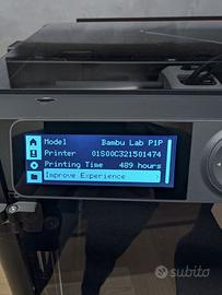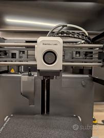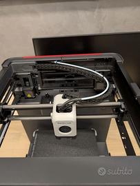 Bambu Lab P1P con enclosure magnetico in plexiglass, catenaria passacavi, cavo testa rinforzato e cestino scarti. Inclusi: - piano di stampa textured pei - ugello 0.4 acciaio temprato - ugello 0.2 inox - wiper ugello di ricambio - accessori (brugola, etc)