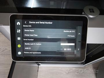 BambuLab X1C Combo con all'attivo 715 ore di stampa.
