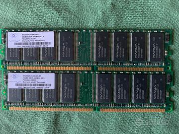 Vendesi due banchi di memoria ram da 256 Mb per computer fisso DDR 400 Mhz PC 3200 . Prezzo 5€ ciascuno