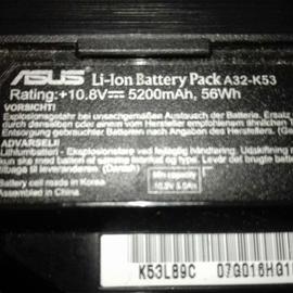US Li-lon Battery Pack A32-K53 Rating:+10.8V-- 5200mAh, 56Wh