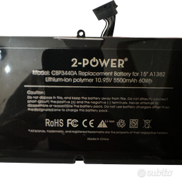 Vendo batteria nuova 2-POWER CBP3440A compatibile con MacBook Pro 15" A1382.