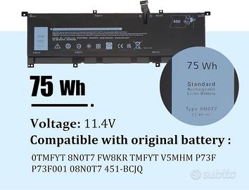 Batteria TMFYT 8N0T7 Batteria per Dell XPS 15