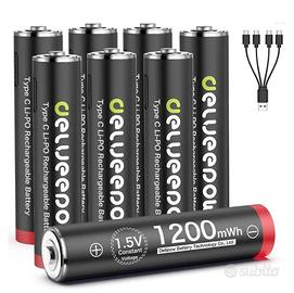 200 batterie 50 confezioni da 4 batterie 1.5V USB-C Batterie AAA ricaricabili 1200mWh, Pile Ricaricabili AAA Litio 1500 Cicli con Cavo USB-C, Vendibili anche a confezione da 4 pile a 8€