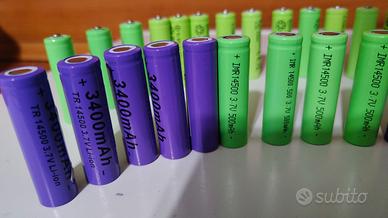 Vendo n. 15 batterie ricaricabili litio mod. Punta Piatta mod. 14500 3.7 V e capacità 500 mah nuove ( sulle viola è indicato 3400 mah ma effettivi sono circa 500 mah ad euro 30 (10 batterie sono color viola e 4 sono color verde e 1 azzurra ), e n. 18 batterie ricaricabili classiche modello con puntale mod. size AA con capacità da 300 mah a 400 mah nuove ( sulle batterie è indicato 600 mah ma effettive sono 300-400 mah) ad euro 9 . Tutte le batterie sono nuove e con capacità indicate in annuncio. Scegliete inpost come spedizione economica . Tel. 3771194175