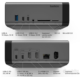 Belkin Hub USB-C, dock da 11 porte, alimentazione 150W.