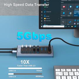 Interruttori di accensione/spegnimento individuali: l'hub USB alimentato è progettato con interruttori di accensione/spegnimento individuali, puoi accendere e spegnere l'alimentazione ogni volta che lo desideri senza scollegare l'apparecchiatura. Inoltre, ciascuna porta include una luce LED in modo da poter controllare lo stato dell'alimentazione.