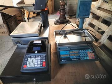 due bilancie elettroniche e un registratore di cassa recente a norma di legge