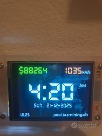 nuovo.. display touch da 2.8 pollici.hashrate constante sopra 1000kh.alimentazione cavo usb tipo c, una volta acceso basta collegarlo alla vostra rete wifi e inserire vostro indirizzo bitcoin poi fa tutto da solo