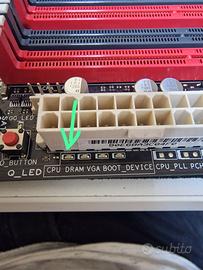 Blocco composto dalle seguenti componenti: MB Asus ROG Maximus Gene CPU i5-750 + dissipatore RAM Hyperx 8GB DDR3 Li ho recuperati da un PC che non faceva boot, all'avvio sulla scheda madre compare il led rosso indicato in foto e non si avvia. Non mi ci sono dedicato pertanto vendo il blocco come non funzionante. In caso di spedizione il tutto verrebbe imballato con la massima cura. A disposizione per chiarimenti. Grazie per l'attenzione.