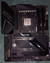 Blocco Ryzen 5950X + ASUS Crosshair VIII Dark Hero + 64Gb DDR4 Vendo blocco usato Scheda Madre + CPU + RAM così composto: -Ryzen 5950X (16 core, 32 thread), ottimo per rendering, simulazioni e compilazione codice. Usato anche per giocare, abbinato a una Radeon 6800 RX in 2K, nessun collo di bottiglia. -Scheda madre ASUS ROG Crosshair VIII Dark Hero (la fascia più alta di ASUS per AM4), aggiornata al BIOS 5201. Vi invito a leggere direttamente le caratteristiche sul sito ASUS, troppo lunghe da riportare tutte qui ;) -64 GB DDR4, composti da due kit: Patriot Viper 4 Blackout DDR4 RAM 32GB (2X16GB) 3600MHz CL18 UDIMM [modello PVB432G360C8K] + Patriot Viper Steel DDR4 RAM 32GB (2X16GB) 3600MHz CL18 1.35v [modello PVS432G360C8K]. Saranno fornite le relative scatole e contenuto di accessori (tranne l'involucro esterno della scatola della scheda madre, purtroppo l'ho perduto). L'intero blocco è ancora assemblato (CPU e RAM già montate), basta solo installarlo nel case. Il pc è stato utilizzato per due anni con Linux (Fedora KDE) senza alcun problema di compatibilità. Ovviamente con Windows 10/11 la compatibilità è assoluta. Vendo per passaggio a piattaforma superiore. Vendo tutto assieme, NON SMEMBRO PER NESSUN MOTIVO, i messaggi che chiedono la separazione dei pezzi verranno ignorati. Precedenza vendita con scambio a mano (Treviso e provincia), ulteriore sconticino se venite a prendervelo. Per qualunque altra domanda, chiedete pure!