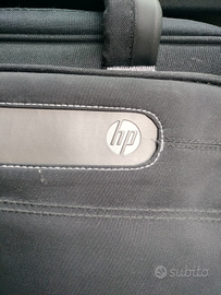 Borsa a tracolla per computer portati, marcata HP, in ottime condizioni. Ha molte tasche sia interne che esterne con chiusura a zip. Tracolla nuova mai usata. Colore grigio-nero.