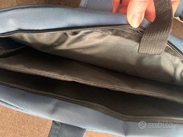 Borsa blu computer e viaggi reporter, con manico, doppio scompartimento, tasche avanti e dietro, imbottita, ottime condizioni (da rinfrescare), misure in foto.
