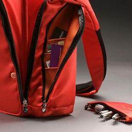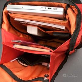 La borsa è nuova, perfetta; l'alloggiamento dedicato al notebook può contenere un portatile Mac o Pc fino 19"(39,5x27x3,5); misura esternamente 40x18x35 cm. circa e pesa 9 etti circa. Rossa, in tessuto tecnico idrorepellente; come da foto, molto ben imbottita e spaziosa, tante tasche e taschine; molto ben rifinita, ottime zip e cuciture. Spedizione 10 € , è possibile la consegna a mano in zona Cesenatico.