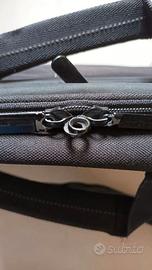Borsa porta pc fino a 25,4 cm (10''-12.1''): sezione principale imbottita per pc, tasca anteriore con varie tasche, tracolla regolabile e rimovibile con spallina imbottita. Usata ma ancora in ottime condizioni, cerniere principali leggermente consumate (vedi foto). Vendo solo perché non ho più pc di quelle dimensioni.