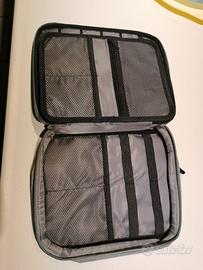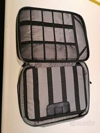 Borsa grigia in tela morbida per netbook o tablet fino a 10/11 pollici circa.