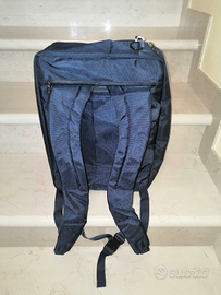 Borsa da Pc portatile fino a 15" o borsa da ufficio marca Tucano robusta ed elegante con parti in pelle colore blu. Due grandi scomparti apribili a cerniera: scomparto centrale diviso internamente in 3 parti per documenti quaderni e PC, scomparto frontale porta accessori PC con tasche interne portapenne, biglietti da visita, agenda. Versione sia a tracolla che a zaino con bretelle nascondibili. Sezione passante per incastro su manico trolley. Presenta solo segni di consumo pelle sui manici, per il resto è intatta, età 1 anno.