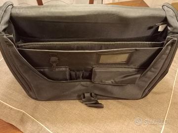 Borsa pc in ottime condizioni. Mult iscomparti esterni (davanti, dietro e laterali). 3 scomparti grandi interni per 2 notebook più documenti. scomparti interni vari per accessori ( pendrive, hard disk, ecc). Tracolla con imbottitura per spalla.