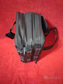 La borsa è a tracolla e con manico , volendo si può dividere in due parti tramite una cerniera unica. Gommata in basso a contatto col suolo. Il materiale è ancora perfetto senza crepe o plastiche seccate dal tempo