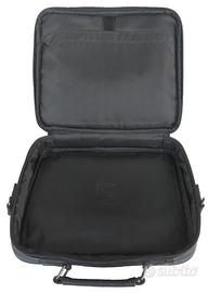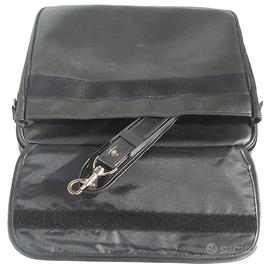 Borsa per notebook nera, uno scomparto per notebook, una tasca interna per tappetino mouse ed una tasca esterna per gli accessori (alimentatore, mouse, telecamera, ...). Tracolla smontabile con moschettoni. Dimensioni esterne: 32x26x10 cm.