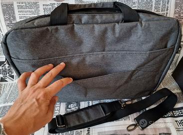 Borsa per PC portatile di dimensioni fino a 18 pollici, con cerniere, e scomparti davanti per accessori e per alimentatore, dietro con strappo, maniglie e tracolla, nuova mia usata! perfetta impeccabile.