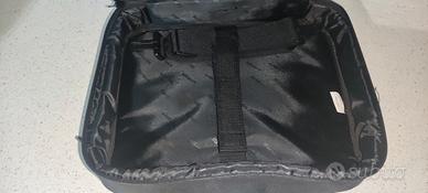Borsa porta computer portatile di piccole dimensioni, ideale per trasportare il tuo dispositivo in modo sicuro e con stile. Realizzata in resistente tessuto nero, presenta dettagli a contrasto che aggiungono un tocco moderno.