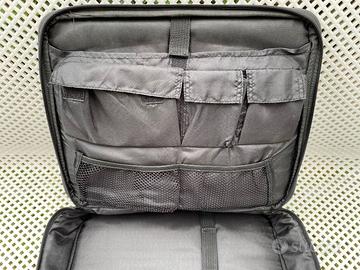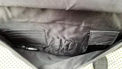 TASCA CENTRALE PER RIPORRE IL PORTATILE ANCHE DI DIMENSIONI IMPORTANTI, MENTRE SOPRA CI SONO DIVERSE TASCHE UTILI PER RIPORRE ALIMENTATORE, MOUSE E ALTRI ACCESSORI SIMILI.