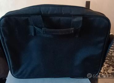 Borsa porta computer HP, adatta per dispositivi fino a 16 pollici. Realizzata in resistente tessuto nero, presenta un design funzionale con una tasca esterna, due scomparti interni e fascia esterna per porla sulla maniglia del trolley.