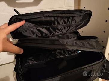 Robusta: Tessuto tecnico nero ultra-resistente e maniglia imbottita rinforzata.