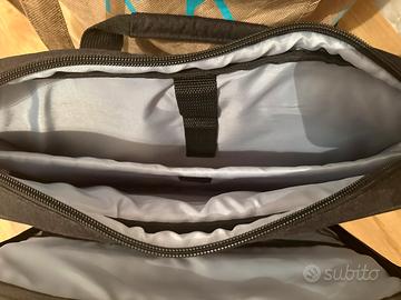 3 scomparti con imbottitura protezione pc e tasca RFID. Dispone di ganci per cinghia a tracolla e predisposizione trolley.