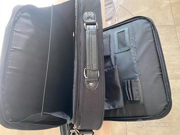 Borsa porta PC nera con travolla e due aperture con numerosi scomparti.