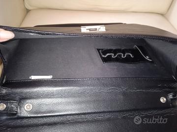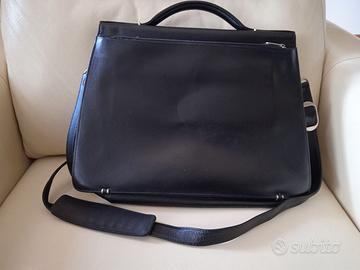 vendo borsa porta computer in vera pelle vitello nera Delsey mai usata, misura cm 39x29, tasca sul retro con zip, portapenne interno, cintura con salvaspalla.