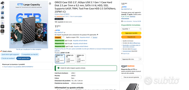 MARCA ORICO BOX Case Hard Disk SSD 2.5", 6Gbps USB 3.1 Gen 1 SATA I II III, HDD, SSD, Supporto UASP, TRIM, Tool Free Case HDD 2.5 SATA Nuovo mai utilizzato, nella sua confezione originale