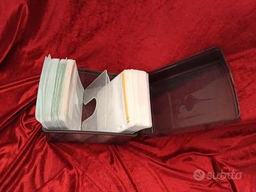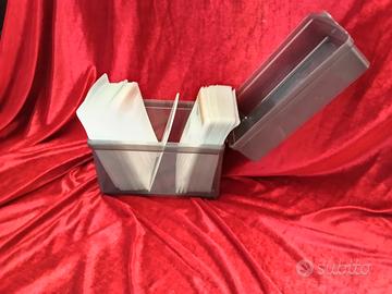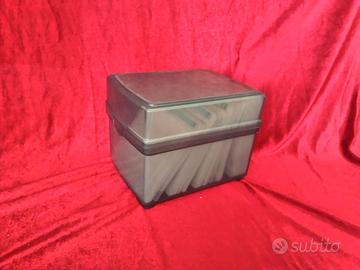 4 box contenitori porta CD/DVD, realizzati in materiale plastico antiurto, largh. cm. 16 prof. cm. 20 alt. cm. 16. 400 buste doppio spazio per 800 CD/DVD. 4 divisori. Buone condizioni.