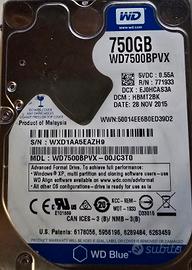 box esterno con interfaccia USB 3.0, contenente un hard disk Western Digital Blue da 750 gb (tipo WD7500BPVX), formattato in exFAT e controllato, veloce ed efficiente per memorizzare dati e portarli sempre con sè