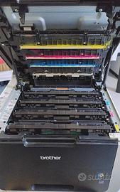 Attualmente non funzionante dopo averla fatta riparare già due volte. Carrello sostituito di recente. I Toner sono presenti tutti e 4, carichi mediamente oltre il 50%. Stampa a colore fronte-retro automatica, si collega con rete LAN, WiFi ed USB.
