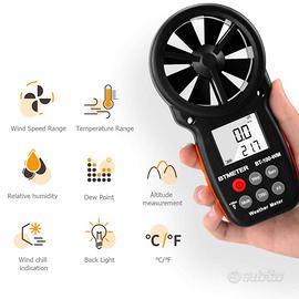 BTMETERBT-100-WM Anemometro 6 in 1 Misuratore di velocità del vento, pressione barometrica e altitudine di prova.