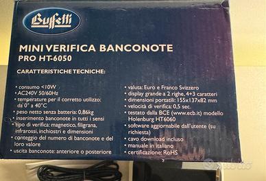 Buffetti Mini Verifica Banconote Pro HT-6050 Euro/Franco Svizzero , Software Aggiornabile, test controllo autenticità professionale, usato una volta, completo di istruzioni , cavo download incluso
