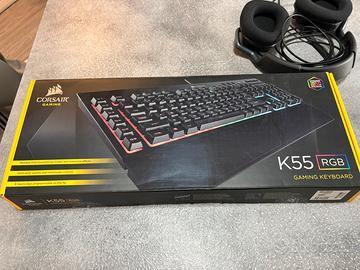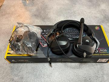 Bundle corsair composto da: Tastiera k55 rgb Mouse scimitar rgb élite Cuffie void élite Non è trattabile. Li vendo così come in foto, cuffie e mouse non hanno più la scatola originale.