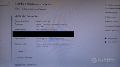 CPU: Intel Core i7 4790 – 4 core / 8 thread, clock base 3.6GHz (turbo fino a 4.0GHz). Ottime prestazioni per gaming, multitasking e applicazioni produttive.