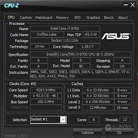 Processore: Intel Core i7-8700 (6 Core / 12 Thread, fino a 4.60 GHz in Turbo, ancora oggi validissimo per gaming e multitasking).